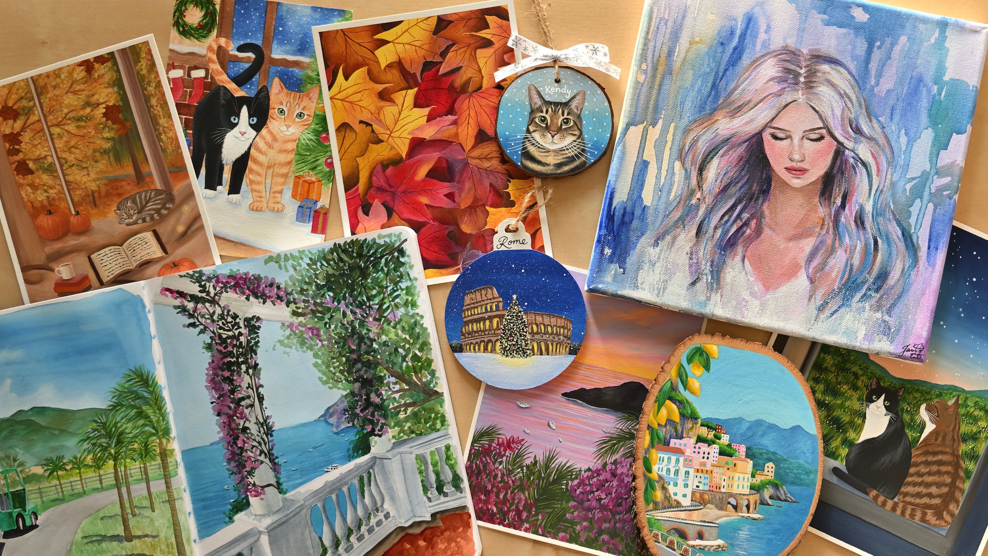 “I commissioned 4 ornaments of our cats from Jamila and they came out so beautifully! She paid attention to individual details about each of our cats and really captured their personalities so well! Jamila was easy to work with and provided options for the background colors of the ornaments and also the ribbon. The ornaments arrived quickly and were carefully and beautifully packaged. I would highly recommend Jamila's artwork and plan to purchase from her again in the future!”